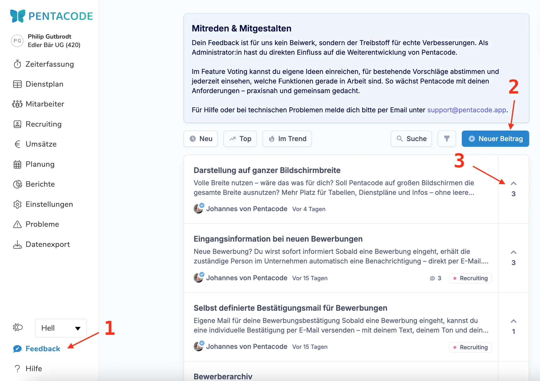 Pentacode bietet Ihnen durch das Feature-Voting die Möglichkeit aktiv an der Weiterentwicklung mitzuwirken.