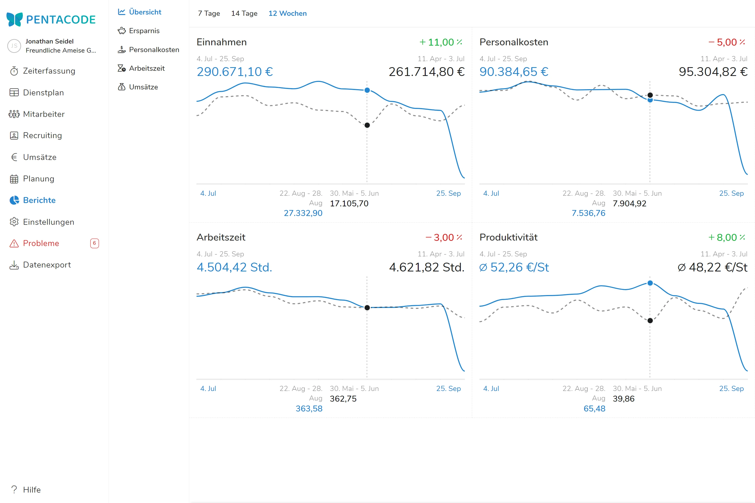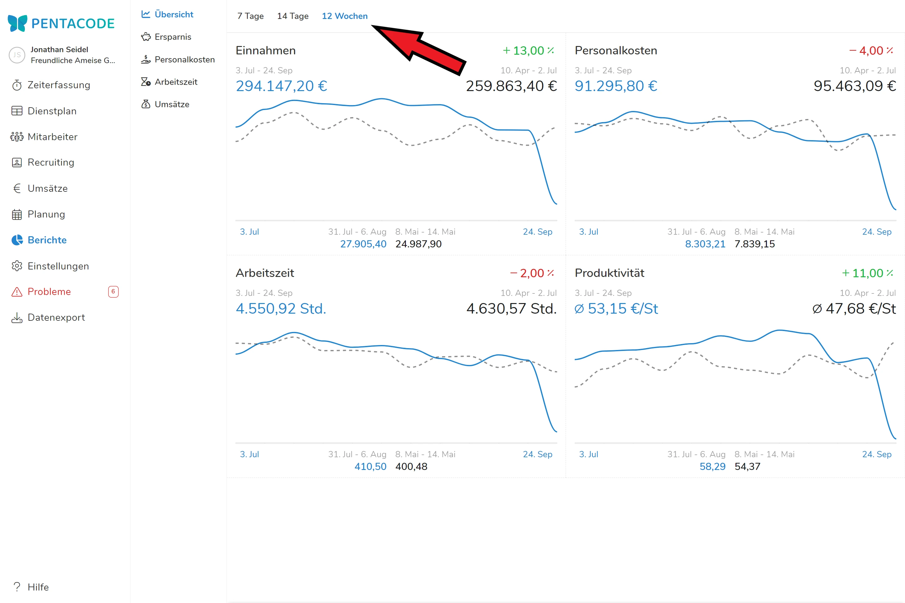 Im vorliegenden Beispiel wurde als Zeitraum 12 Wochen gewählt. Dies entspricht zwei Quartals-Zeiträumen.