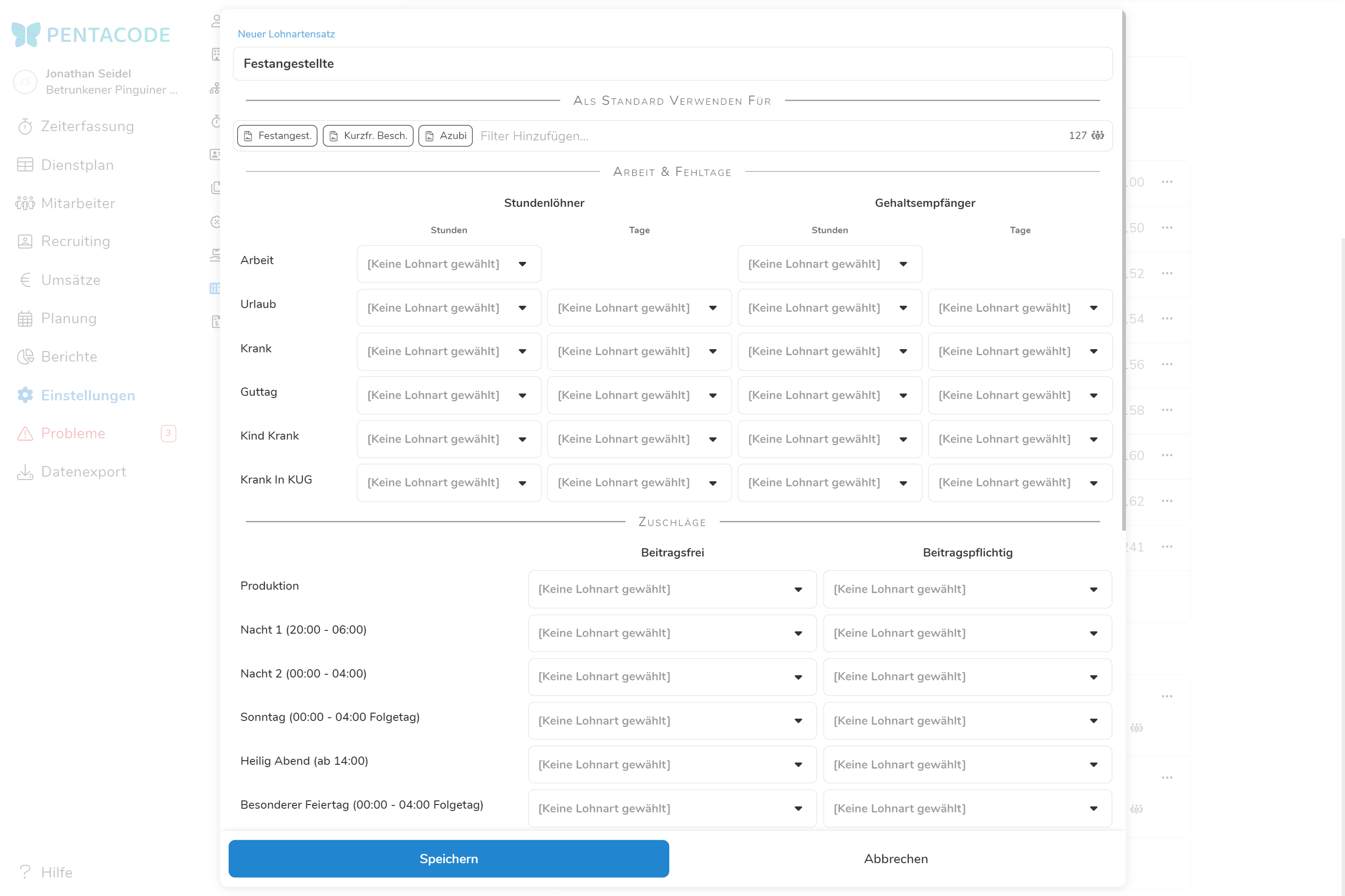 Wenn Sie es sich so einfach wie möglich machen wollen, empfehlen wir Ihnen im ersten Schritt in Absprache mit ihrer Buchhaltung alle von Ihnen verwendeten Lohnarten in Pentacode anzulegen.