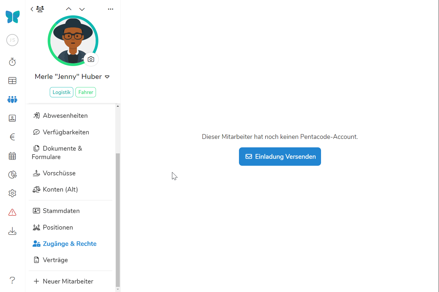 Um in die Übersicht zu gelangen, wählen Sie den Punkt Mitarbeiter im Hauptmenü und dort den Unterpunkt Zugänge & Rechte.