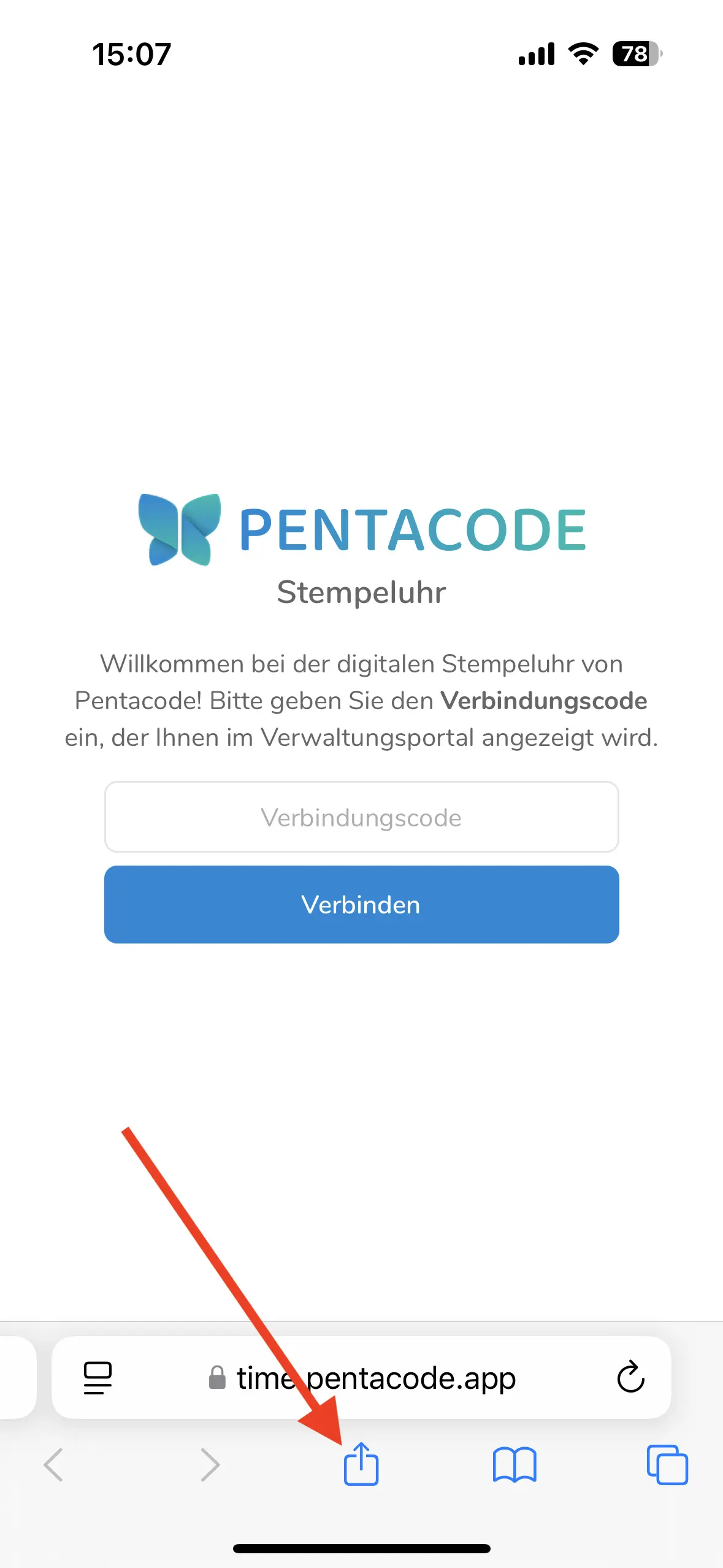- Geben Sie folgenden Adresse in die URL-Leiste ein: https://time.pentacode.app